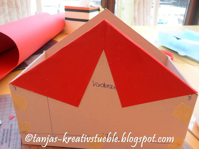 Wichtig ist hier das die grossen Vorderseiten (Dreieck) „innen“ eingefasst werden und nicht außen auf geklebt werden.